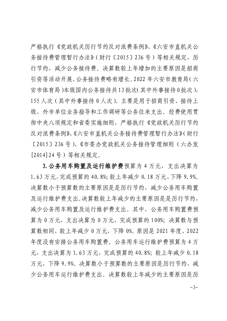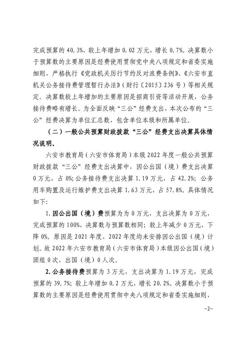 【经费投入与使用】六安市教育局(六安市体育局)本级2022年度一般公共预算财政拨款“三公”经费支出决算报表及说明公开