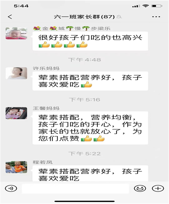 该校及时公示食谱,广泛征求意见。学校通过班级群及时将供餐食谱向全校师生和家长公示。一方面搭建沟通平台,便于学生家长及时了解学生的就餐情况;另一方面有利于家长根据在校就餐的营养特点,对家庭膳食进行合理调整,适当弥补学校膳食供给的局限,同时又为学校配餐提出良好的建议。