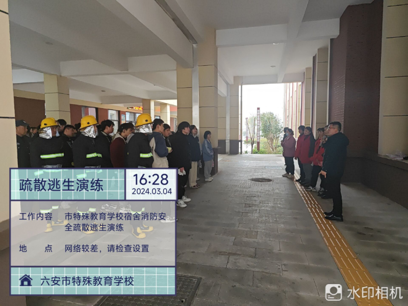 为进一步落实上级有关安全教育工作精神,增强住校师生的消防安全意识,普及消防应急疏散安全常识,提高师生及物业安保人员面对紧急事件的处理能力,保障师生生命安全,3月4日下午,六安市特殊教育学校开展了宿舍楼消防安全疏散逃生及灭火演练。
