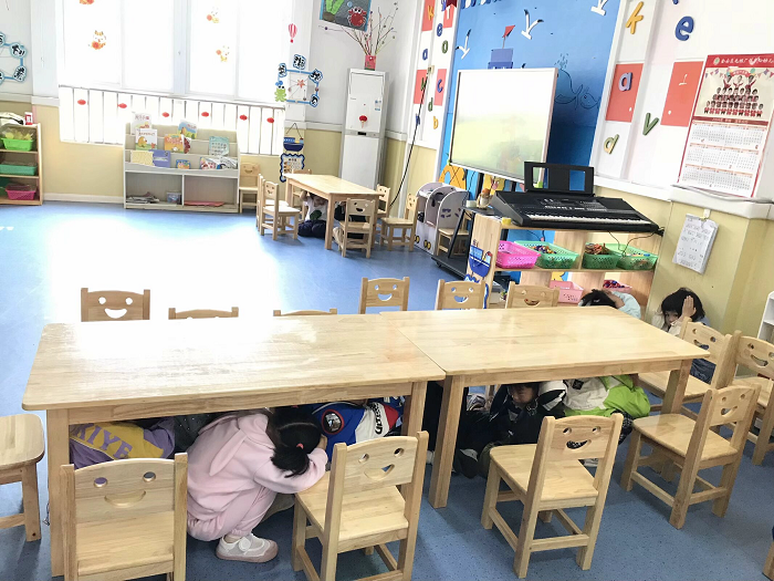 活动前一天,高庆菊园长召开了防震减灾动员大会,强调了此次活动的重要性,并详细讲解了活动的演练方案、流程和注意事项。各班组织幼儿开展了防震减灾安全教育课,让孩子懂得地震形成的原因,了解地震来临时应该如何应对!随着第一声警报响起,紧张而逼真的防震演习开始了,幼儿在老师的指挥下,迅速躲到桌子底下避险。随着第二声警报声响起,各班教师迅速组织幼儿按照预定的疏散路线,有序地撤离到安全地带。在整个过程中,孩子们表现得非常勇敢和镇定,听从老师的指挥,快速而有序地完成了疏散。