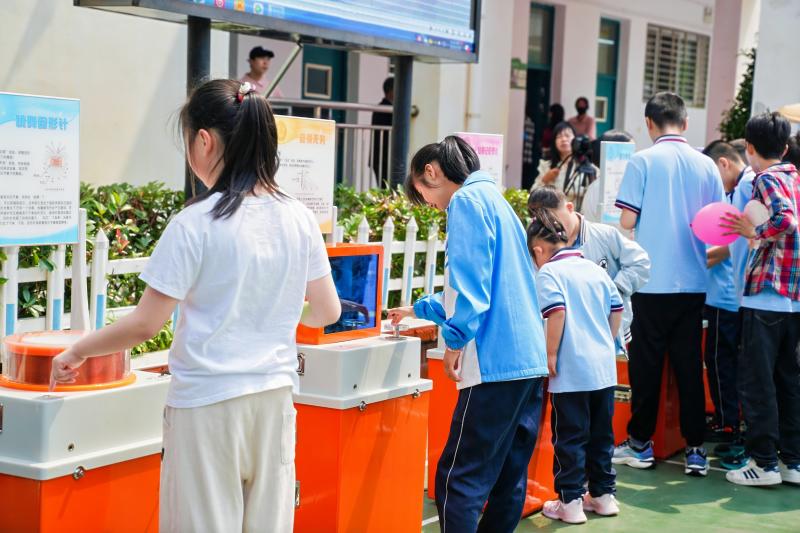 活动现场,科技大篷车带来了机械伸缩花、漂浮的磁铁、弹簧据、视错觉钟等各类科普展品,同学们在金寨县科学技术协会老师的指导下,兴致勃勃地穿梭在各个展台之间,通过参观和体验,进一步激发了他们热爱科学的浓厚兴趣。
