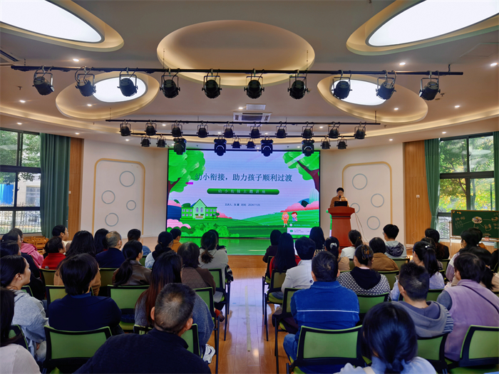本次活动,幼儿园邀请了人民路小学望城岗校区张蕾老师,结合自己多年丰富的低年级教学经验和专业理论知识,围绕“幼小衔接,助力孩子顺利过渡”这一话题,与大班家长们共同探索科学幼小衔接的理念与方法。
