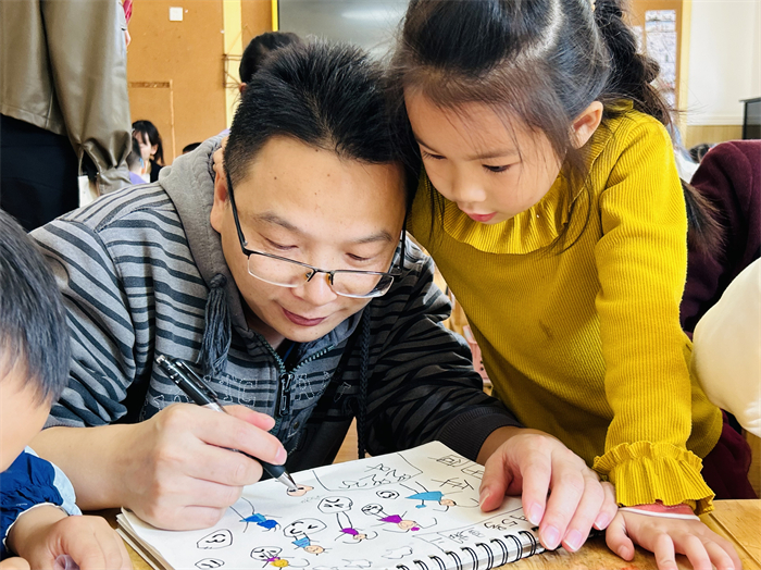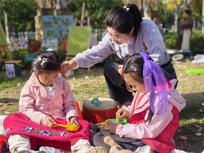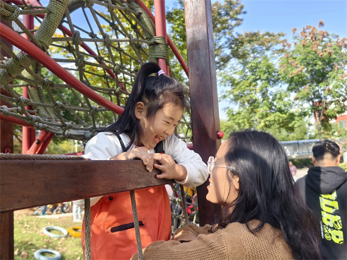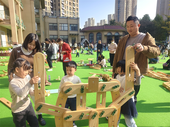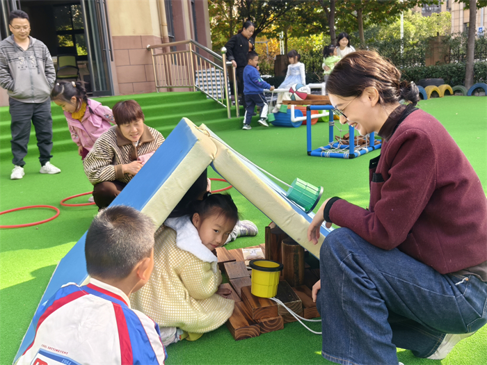 在与幼儿共同游戏的过程中,家长们全身心投入,高质量的亲子陪伴不仅让孩子们玩得开心,也让家长们重新找回了童年时的快乐。