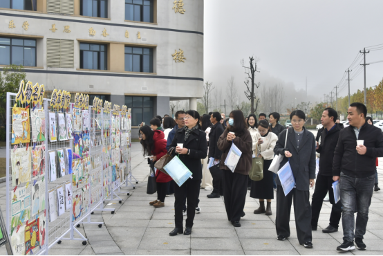 “老师们,这里是‘悦读吧’,是同学们课余最喜欢来的地方,在这里可以与古人对话、与智者交流;在这里可以感受文明细胞、畅想千年历史……;这里是‘醉墨轩”,墙上这一幅幅书画作品展现的是同学们对祖国、对家乡、对学校的热爱之情,……”参加青少年学生读书行动交流活动的老师们,跟随着新城小学的“小导游”参观美丽而又墨香味十足的校园,一步一景,或驻足于富有个性的楼道文化,或沉浸于赏心悦目的书画作品,感受着浓浓的书香氛围。同学们的读书成果作品——读书笔记、绘本制作、创意书签、读书小报、读后感等令在场的老师的啧啧赞叹。新城小学的学生们的才艺表演更是精彩纷呈。朗诵《诗意中国》声情并茂,快板《福籽童心耀中华》活力满满,情景剧《书香清自远 繁华满征途》创意十足,课本剧《金色的鱼钩》感人至深,充分展现了学生们的才华与对阅读的热爱,也彰显了新城小学师生积极向上的精神风貌与良好的综合素养。
