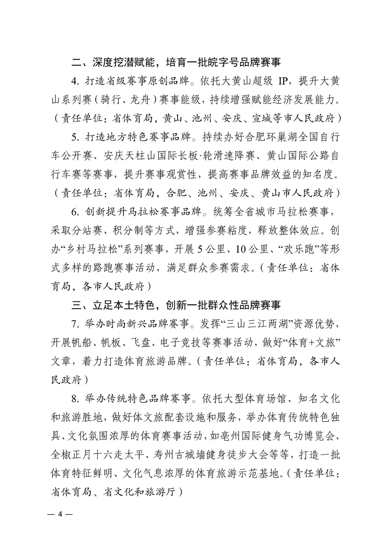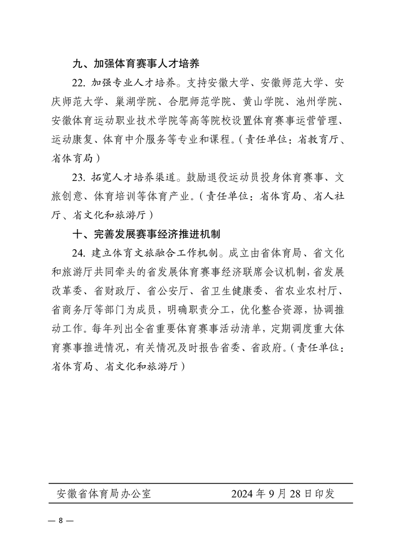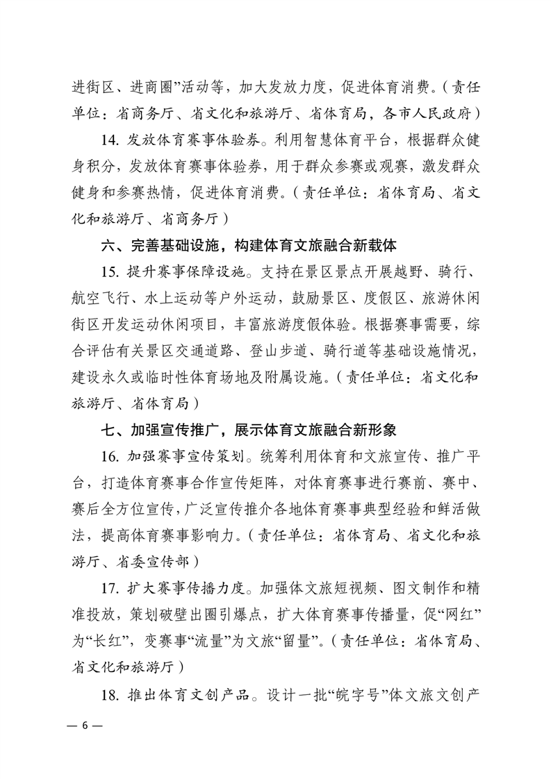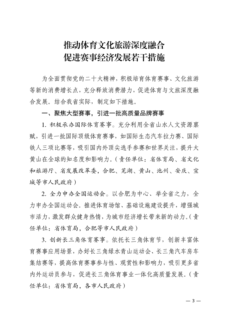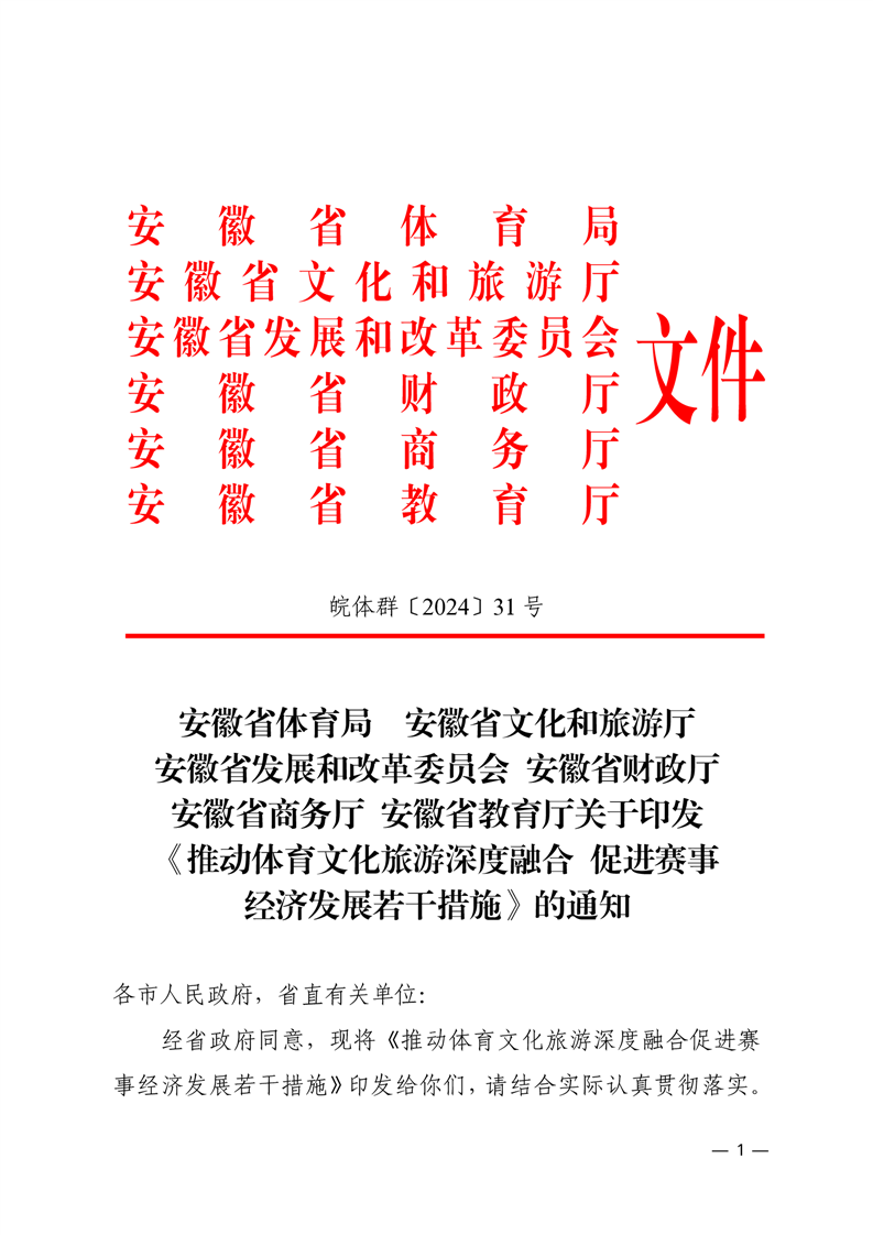 【政策文件】安徽省体育局 安徽省文化和旅游厅 安徽省发展和改革委员会 安徽省财政厅 安徽省商务厅 安徽省教育厅关于印发《推动体育文化旅游深度融合 促进赛事经济发展若干措施》的通知