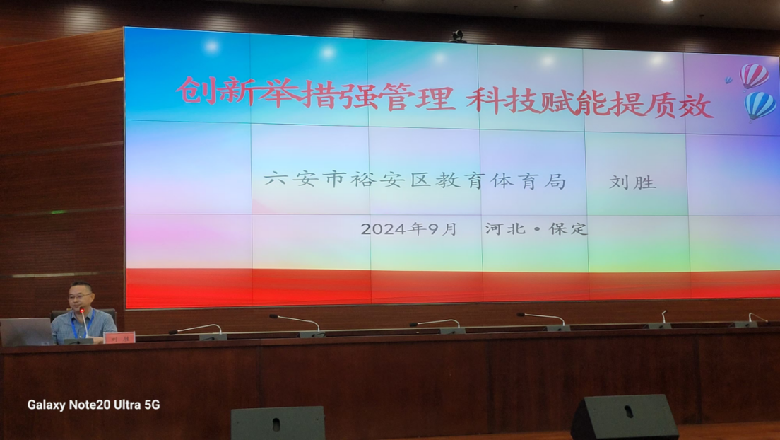 六安市教体局、裕安区教体局营养改善计划负责人参加了会议,裕安区代表安徽省作了《创新举措强管理 科技赋能体质效》经验交流发言。