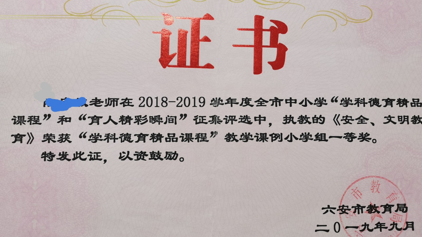 请问,以上照片中的"学科德育精品课程“教学课例证书能否作为小学语文教师副高评选的“业绩条件“用?谢谢!