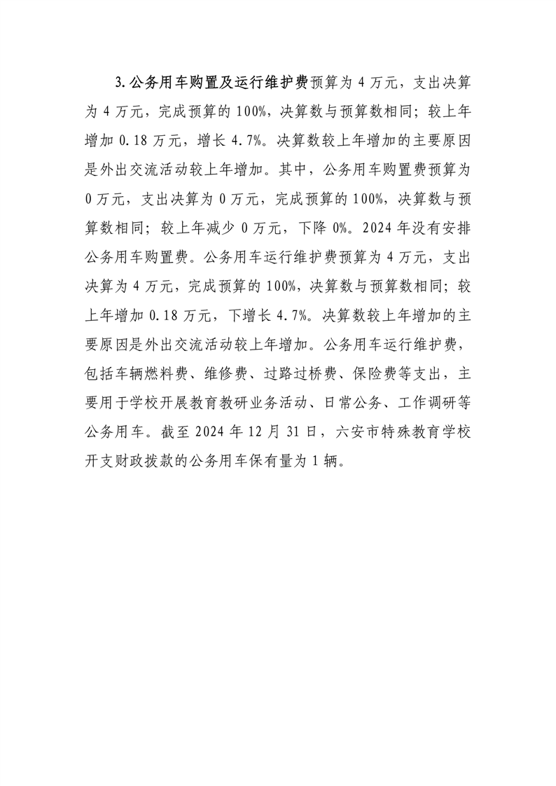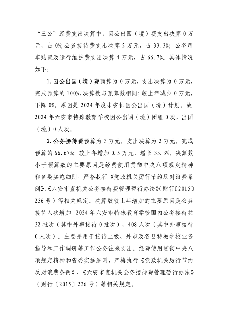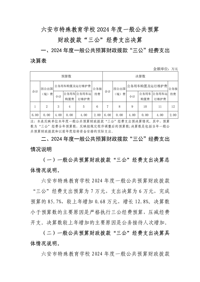 六安市特殊教育学校2024年度一般公共预算财政拨款“三公”经费支出决算报表及说明公开