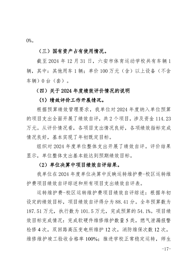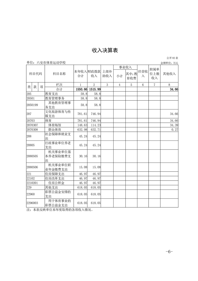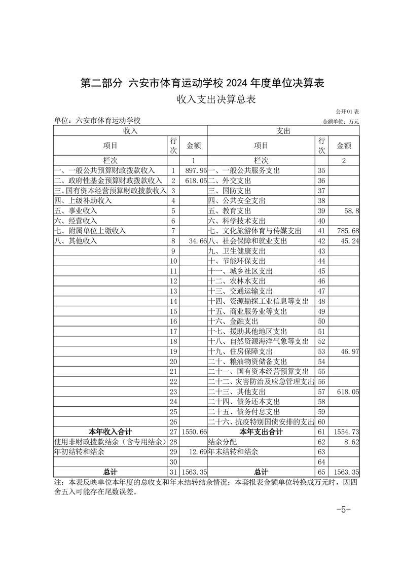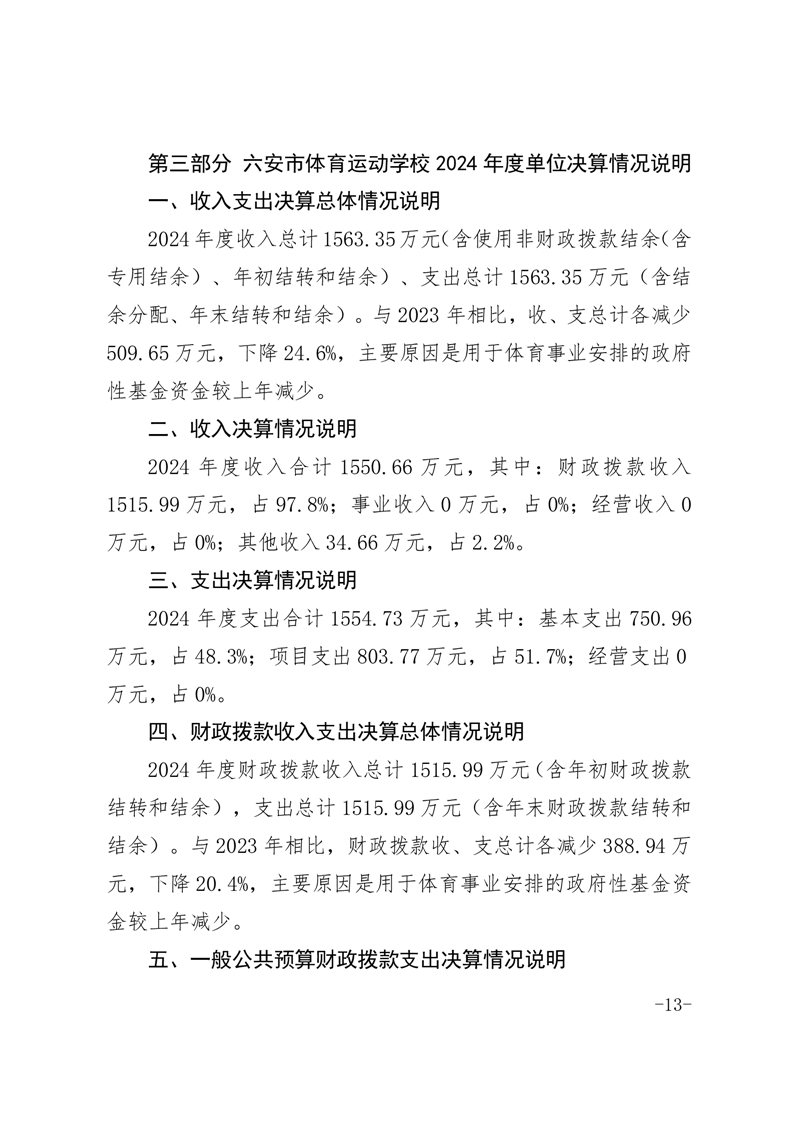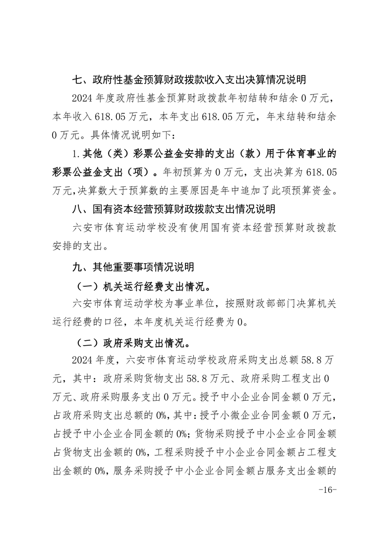 六安市体育运动学校2024年度单位决算报表及说明公开