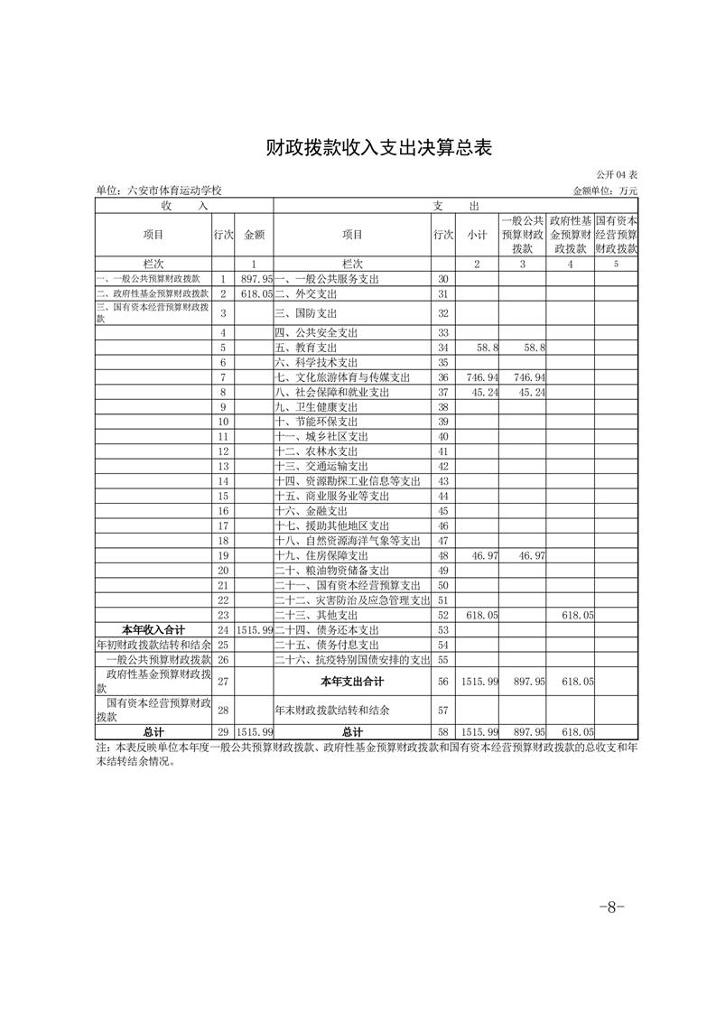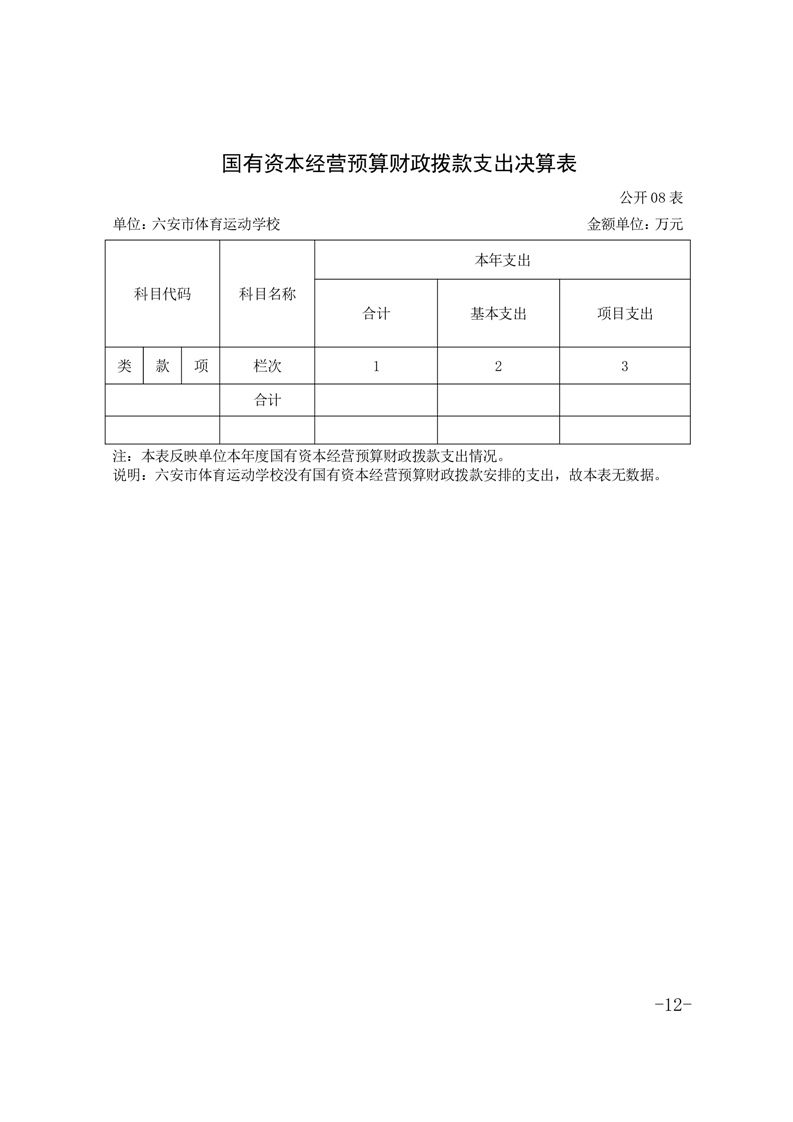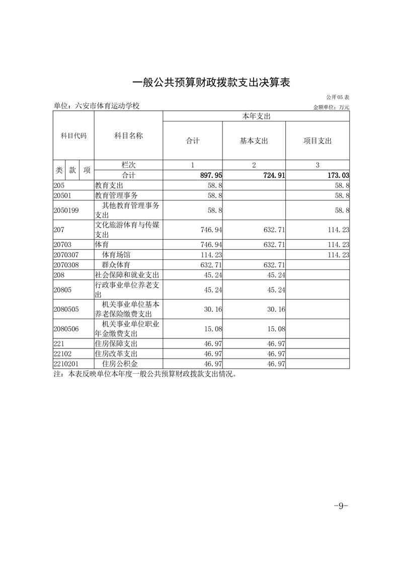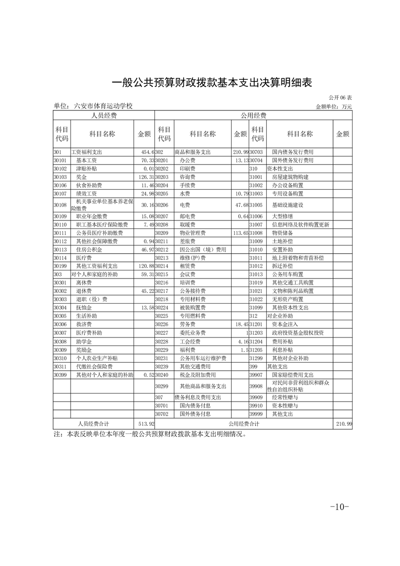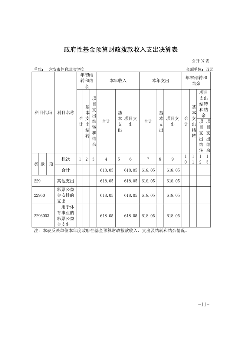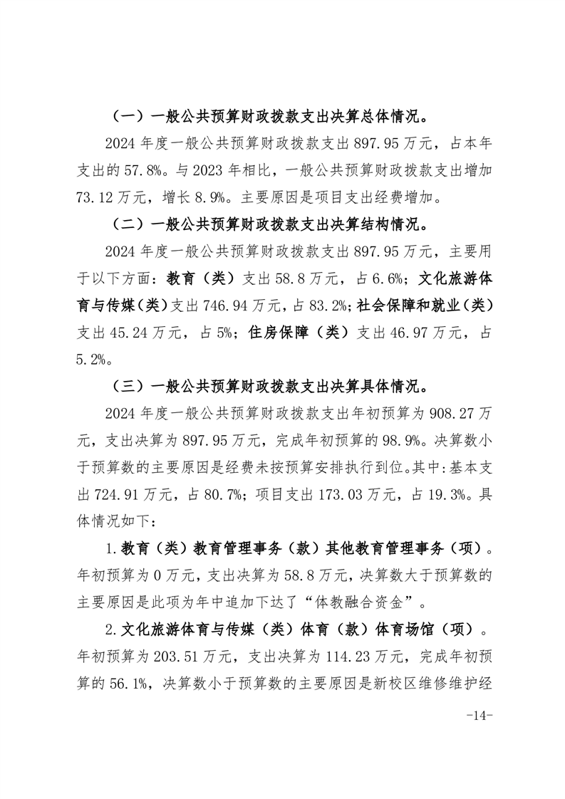 六安市体育运动学校2024年度单位决算报表及说明公开