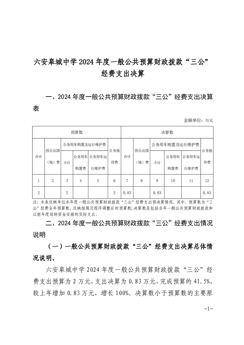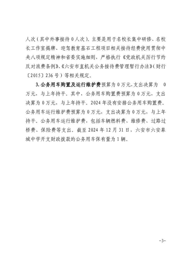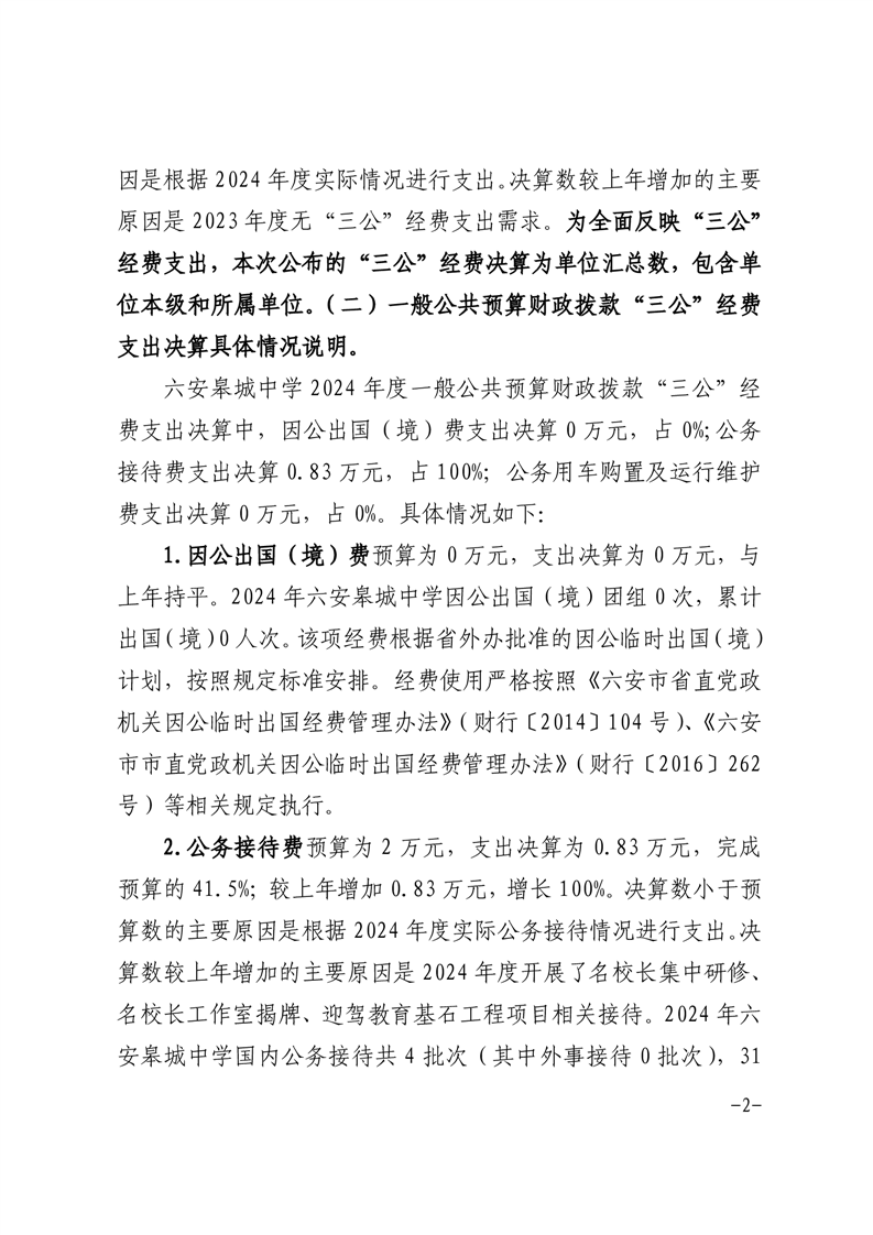 六安皋城中学2024年度一般公共预算财政拨款“三公”经费支出决算报表及说明公开