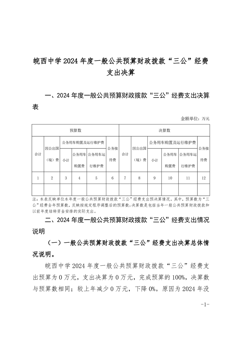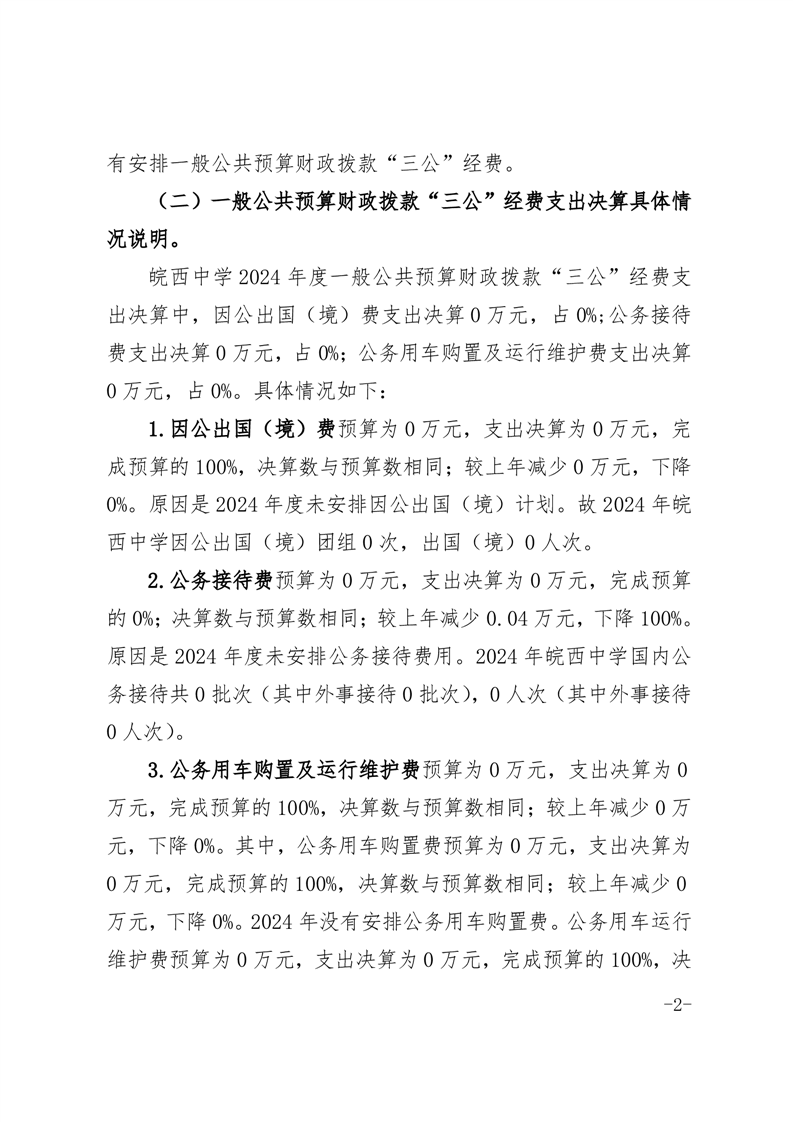 皖西中学2024年度一般公共预算财政拨款“三公”经费支出决算报表及说明公开