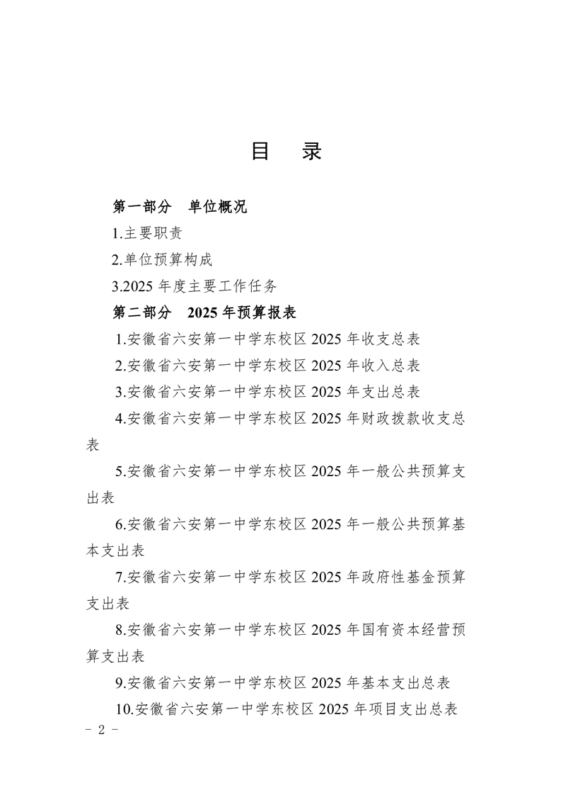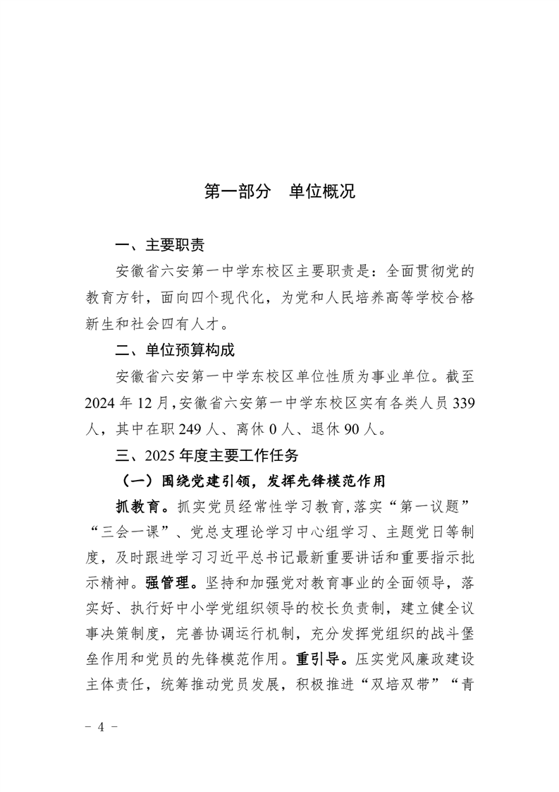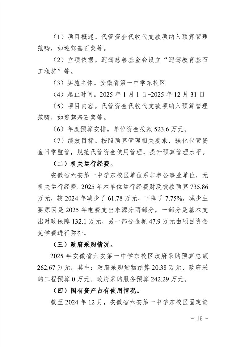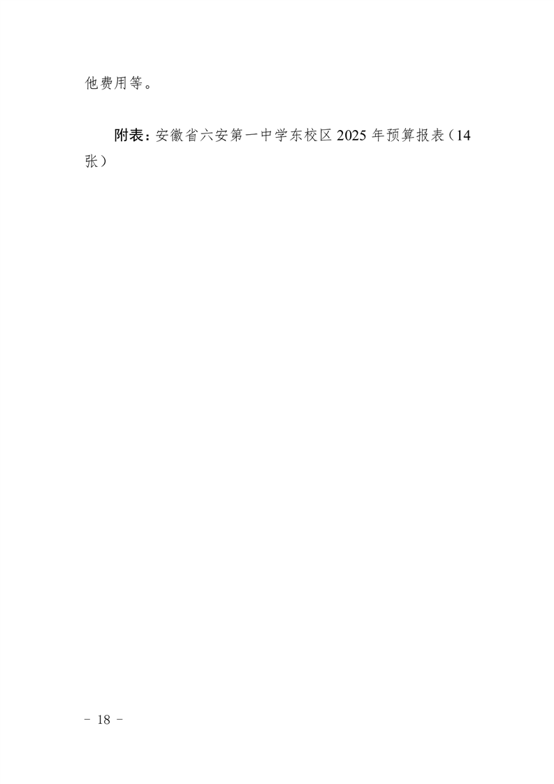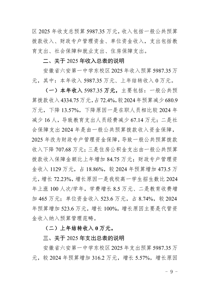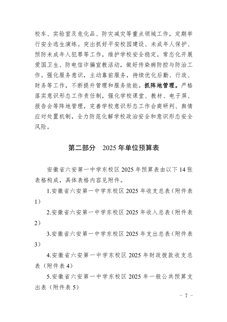 安徽省六安第一中学东校区单位2025年单位预算公开