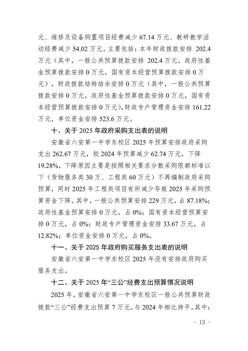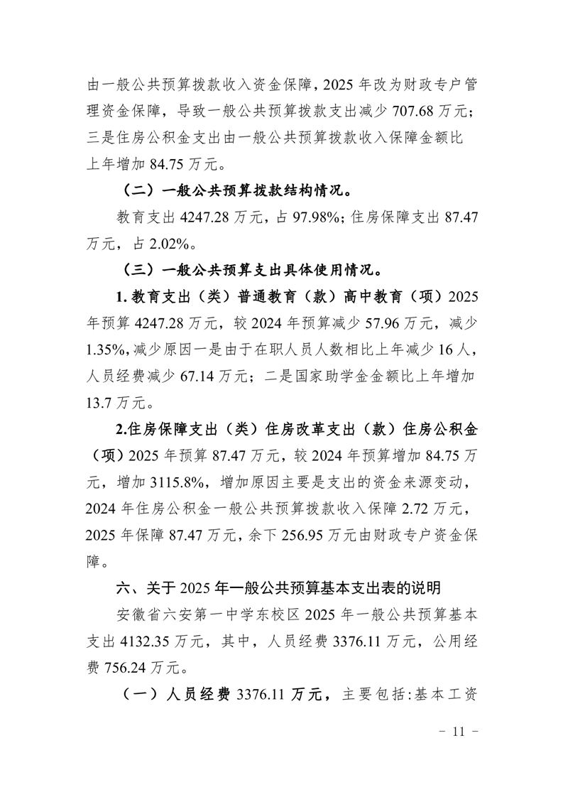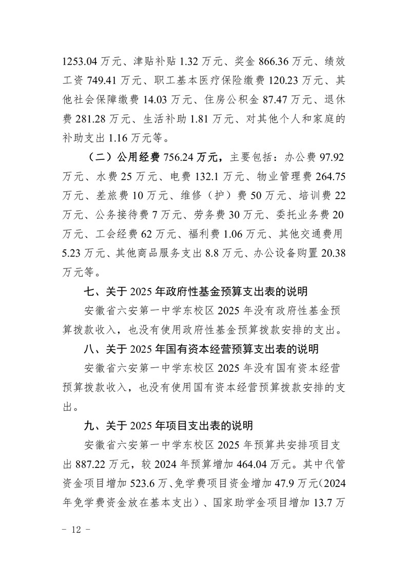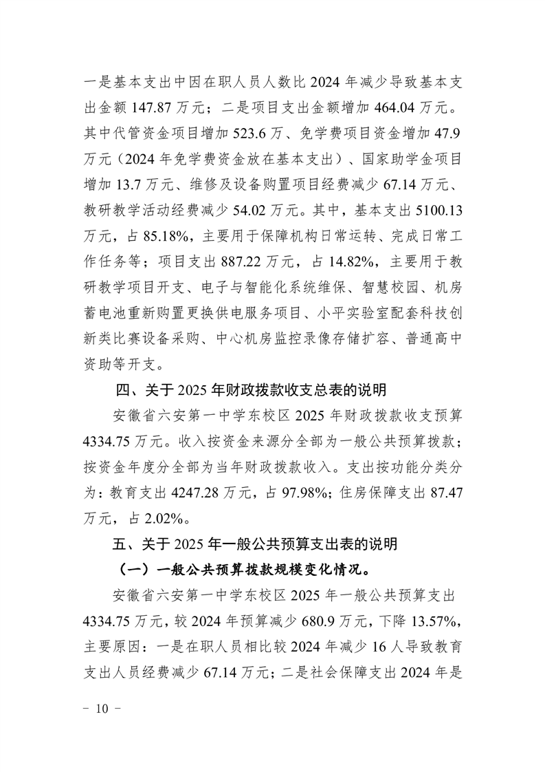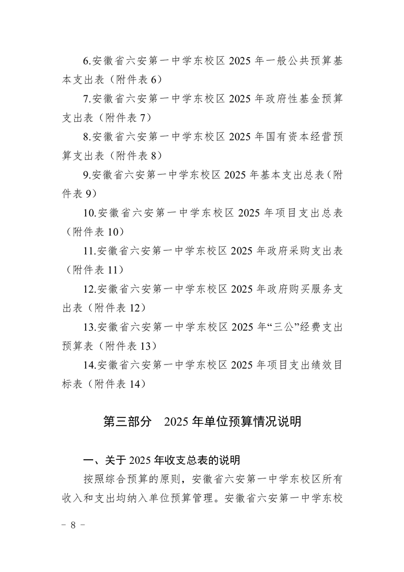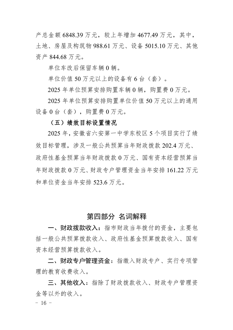 安徽省六安第一中学东校区单位2025年单位预算公开