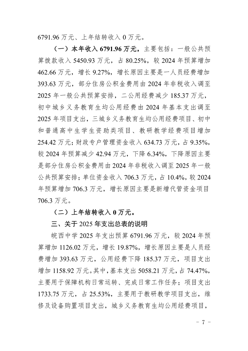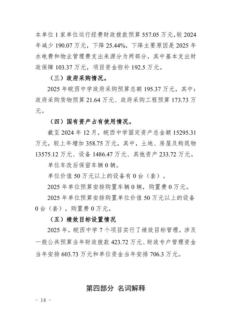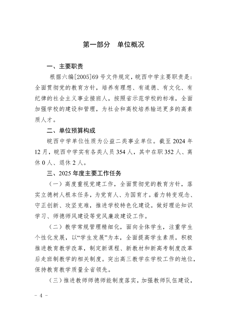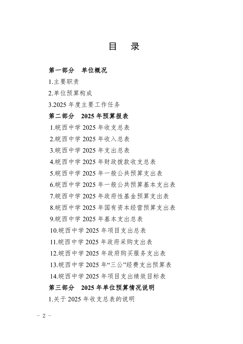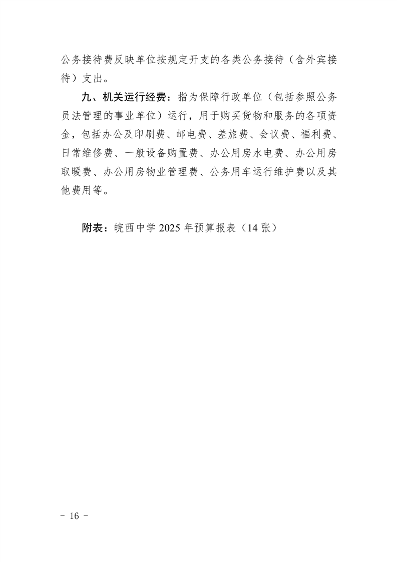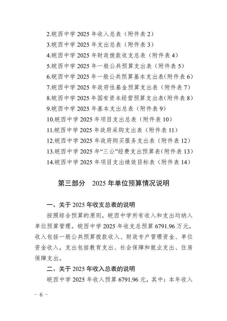 皖西中学2025年单位预算公开