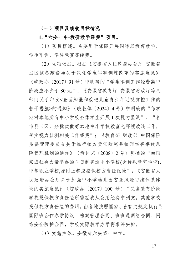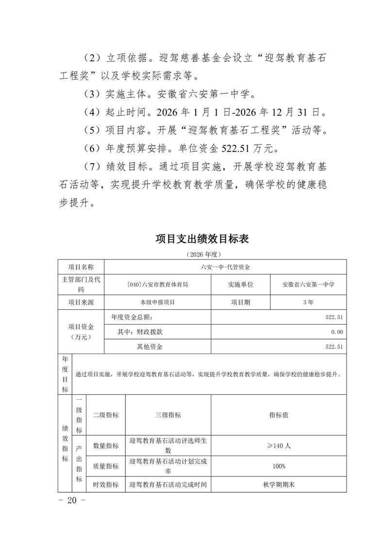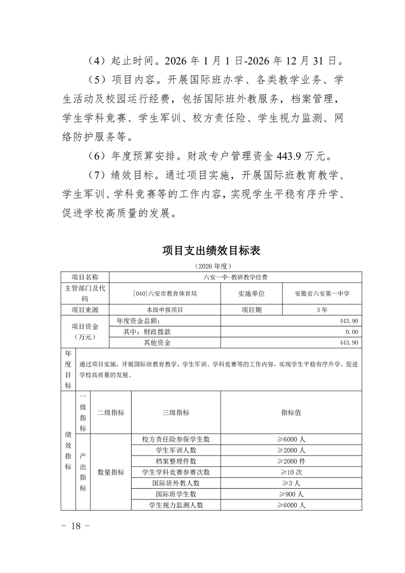 14.安徽省六安第一中学2026年项目支出绩效目标表.pdf标签: