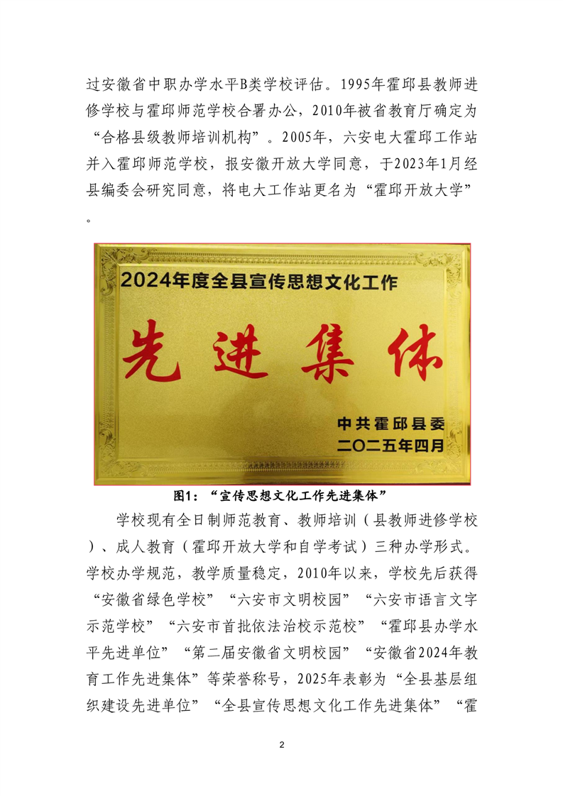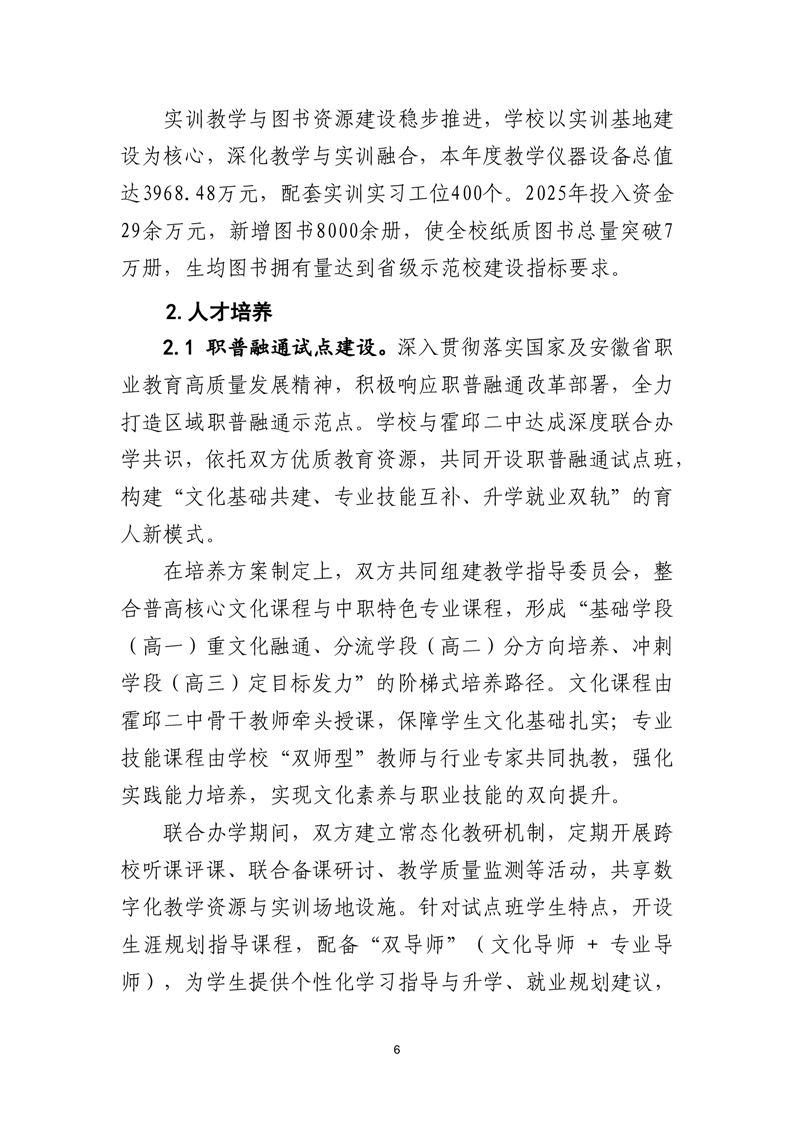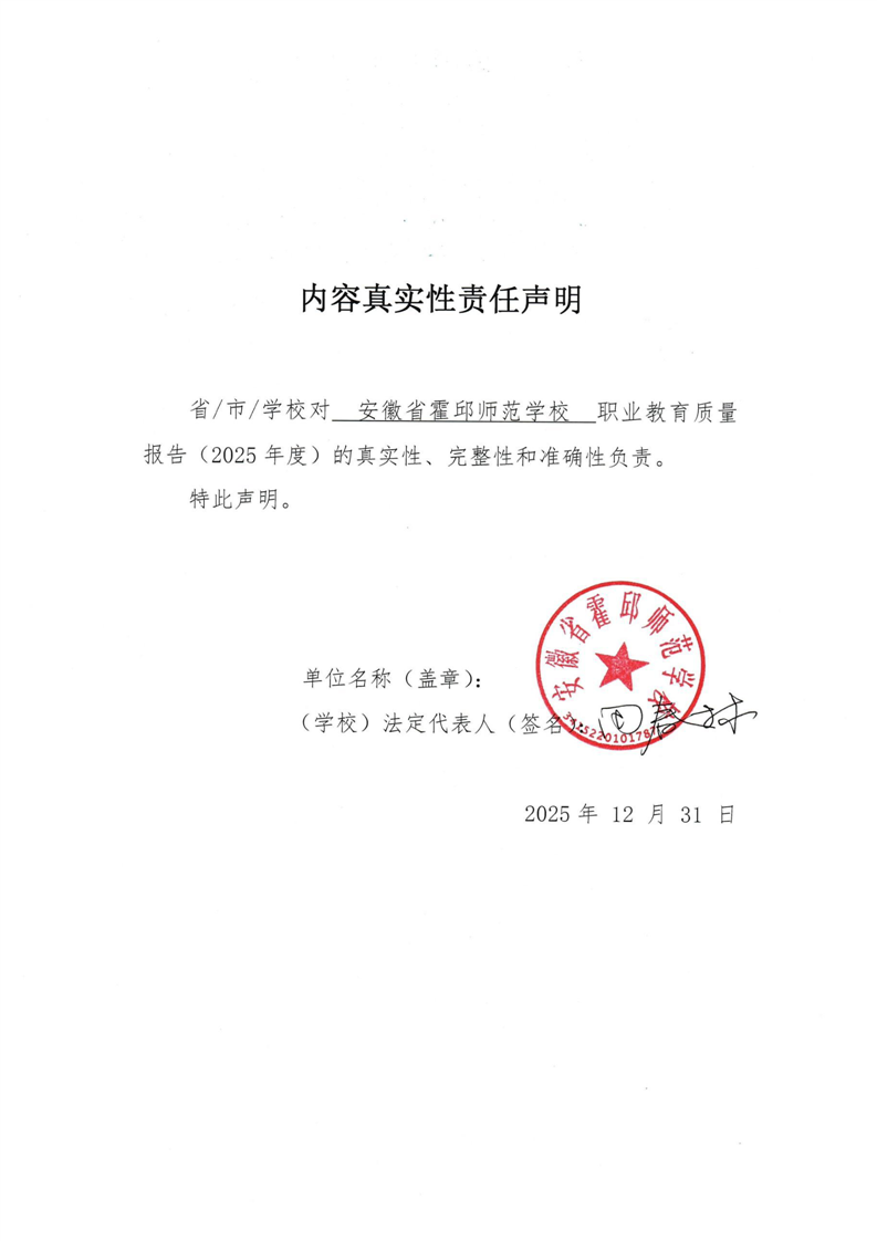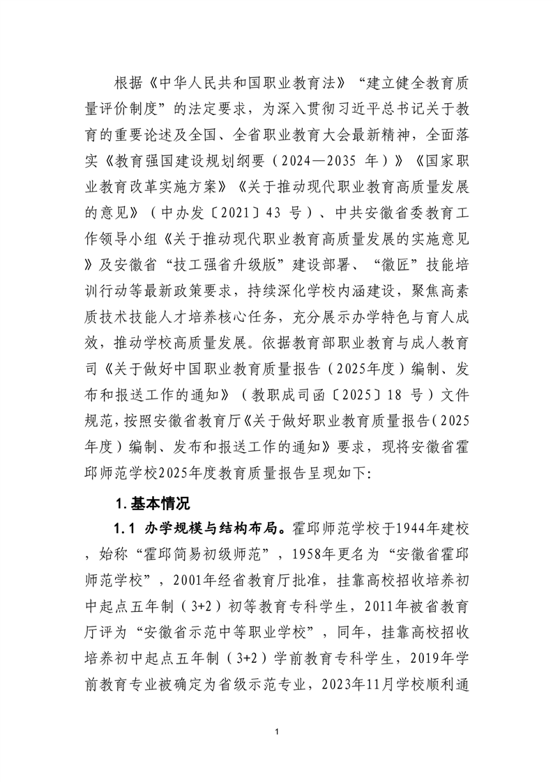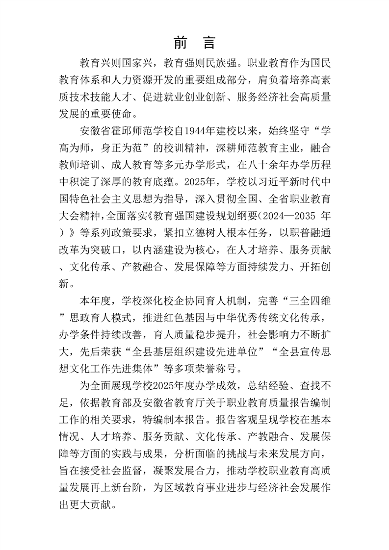 安徽省霍邱师范学校质量年度报告(2025年)