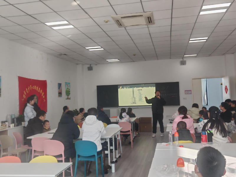 活动紧扣“科创赋能、亲子暖心”主题,精心设置科学知识讲解、亲子手工制作、水火箭放飞比拼三大环节,将科学启蒙、动手实践与心理疏导、亲子陪伴有机融合,环节衔接有序、趣味十足。在科学知识讲解环节,教师用通俗直白的语言为亲子家庭科普水火箭升空的力学原理、结构设计技巧,将心理健康教育融入其中,让知识传递兼具温度与深度。