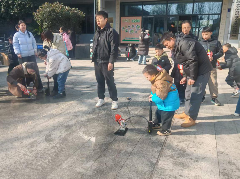 在水火箭放飞环节,所有的亲子家庭有序来到发射区域,小心翼翼摆放好亲手制作的水火箭,调试角度、加压蓄力,随着一声声清脆的发射指令,承载着创意、梦想与亲子温情的水火箭腾空而起,在空中划出优美的弧线。这一刻,不仅让孩子们感受着科创实践的成就感,更让亲子双方在共同见证成果的过程中收获满满幸福感,有效释放日常学习与生活压力。