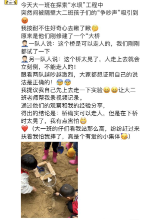 通过与家长的交流,教师了解了孩子的家庭状况、学习环境,以及孩子在家的表现。倾听到了家长的希望、建议以及育儿心得等,增强了家庭教育的主动性和能动性,连接了家园共育的桥梁,更好的帮助了家长和幼儿园携手共同做好孩子的教育工作。