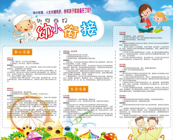 通过宣传橱窗、微信公众平台、今日头条、户外电子屏幕等等推出幼小衔接的宣传专栏,让家长了解幼小衔接工作的重要性,知道幼儿园与小学的学习生活有什么不同,根据幼儿实际发展水平,有目的、有计划地渗透在日常的家庭教育当中。