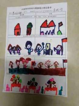 了解和感受幼儿园跟小学的不同,在孩子们回到幼儿园后,教师鼓励幼儿大胆表达,师幼一起设计了参观小学的记录表,将感受带回家中,并用绘画的方式与家长一起交流所看所想,共同记录参观的感受。