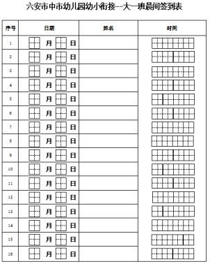 幼儿园制定每日幼儿晨间签到表,周一至周五在园内签到,周末在家签到。此活动有助于提高幼儿对日期、数字以及自己名字的熟练度,为踏入小学做好学习准备。