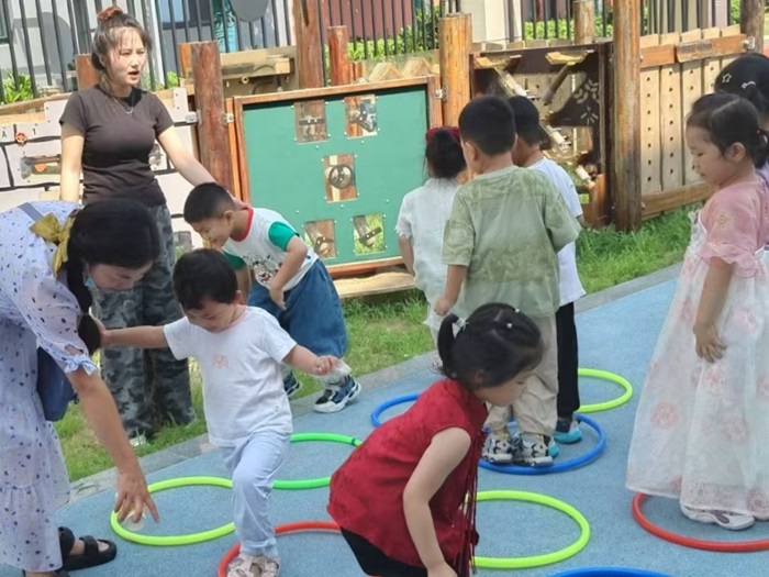 老师们通过游戏、竞赛等形式,引导孩子们积极参与,不仅锻炼了孩子们的身体协调性,还增强了团队合作意识。同时,这些活动也让孩子们在游戏中体会到了快乐,逐渐消除了对幼儿园的陌生感。该园深知生活习惯的培养对孩子成长的重要性,因此在入园体验中特别设置了生活技能学习环节。通过儿歌教学教会孩子们正确洗手的方法,利用故事讲述引导孩子们了解午睡的重要性,还有在老师的指导下学习自己整理玩具和衣物。这些看似简单的日常活动,实则是孩子们独立性和责任感培养的第一步。
