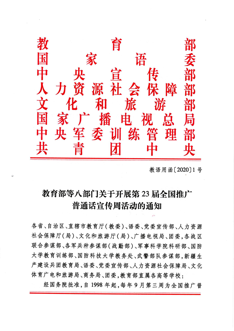 教育部等八部门关于开展第23届全国推广普通话宣传周活动的通知