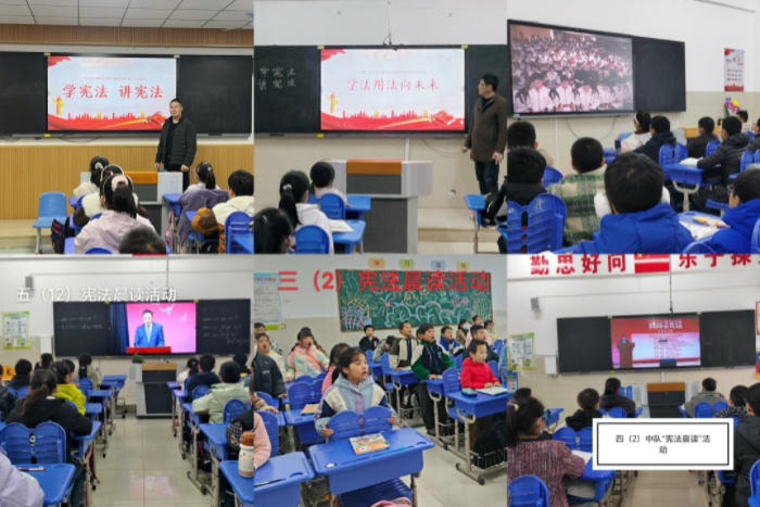 活动当天上午10时,各班级准时登录普法网直播平台,跟随直播引导齐声诵读宪法核心条文。朗朗书声中,学生们直观感受了宪法的庄严与神圣,也进一步理解了宪法赋予公民的权利与义务。晨读结束后,各班级还结合学生年龄特点,开展了形式多样的宪法主题班会。班主任通过案例讲解、知识问答、小组讨论等方式,用通俗易懂的语言向学生们解读宪法的核心内容和重要意义,引导学生们明白宪法与日常生活的密切联系,懂得要从小树立法治观念,自觉遵守宪法法律,做一名知法、懂法、守法的小公民。