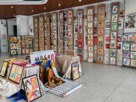 打造校园艺术天地。绘画展区:按“校园生活”“家庭趣事”“秋日自然”分区陈列画作,暖色调展板搭配简约解说,错落悬挂的作品宛如展开的童真画卷,吸引师生驻足细品。