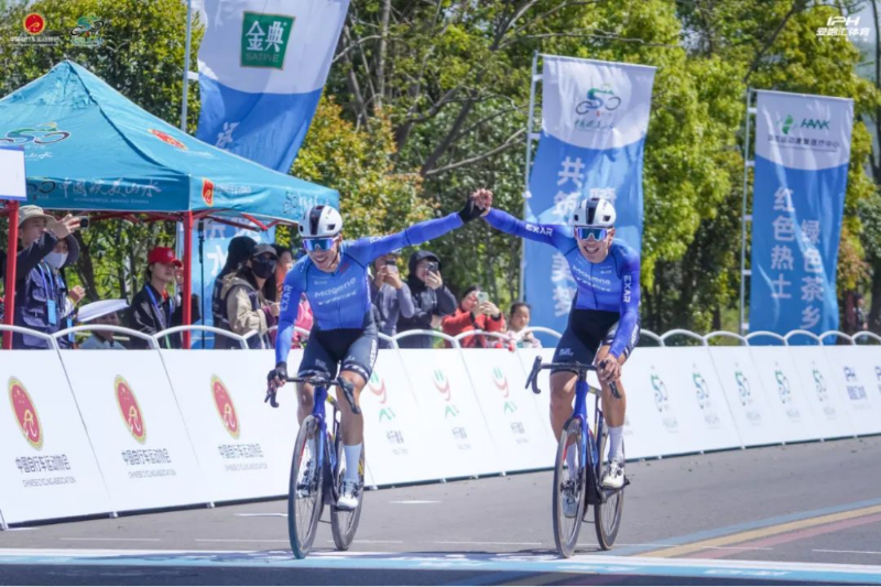 最早出发的男子公路精英组比赛非常激烈。迈金科技-TREK HC-NSVE车队和BROSS-CENIT车队在终点线上展开了令人血脉贲张的终点比拼。