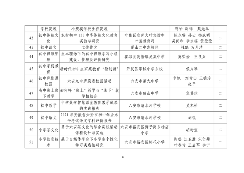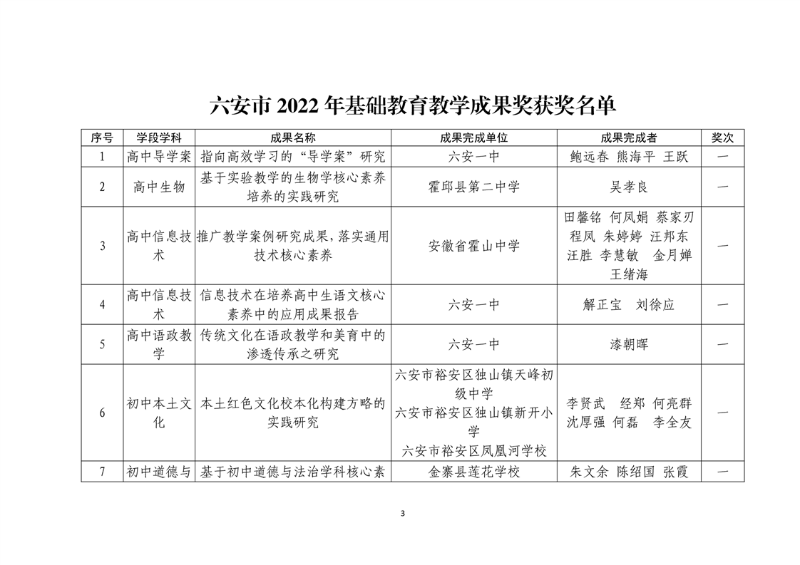 附件:六安市教育局关于公布2022年基础教育成果奖评选结果的通知