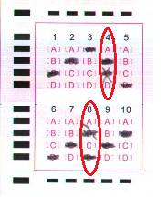 但往往考试时很多同学因为紧张、答题不仔细或使用不合格的2B铅笔等原因填涂不规范,可能会影响答题卡扫描,下面就是几种常见错误填涂样例: