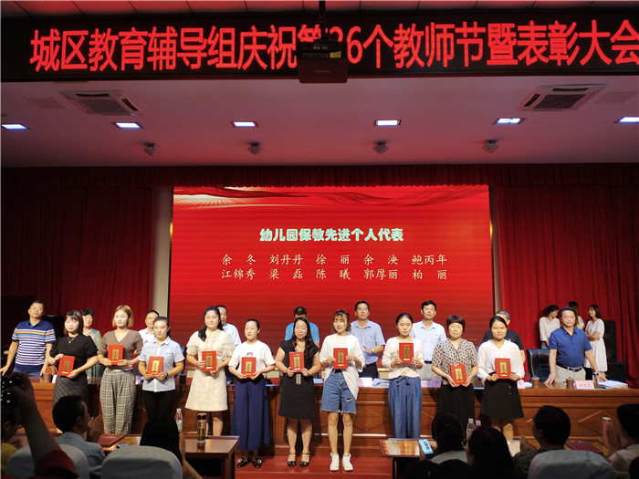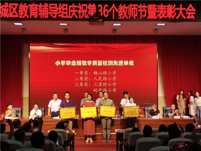 会上,金安区城区教育辅导组副组长项应山宣读了表彰文件和获奖名单。此次表彰经过层层选拔考核,共评选出优秀党支部、毕业班教学质量检测先进单位、“青年大学习”组织工作先进单位、幼儿园保教工作先进单位、素质教育提升工程活动先进个人、优秀班主任、优秀教师等11个奖项,共有34个单位获得先进集体表彰,有290名教育工作者获得个人表彰。在全场热烈的掌声中,城区教育辅导组为这些教育战线涌现出的先进模范颁发荣誉证书。大家满载着喜悦和祝福,怀揣着憧憬和理想,接过了这份凝聚着汗水和奉献的荣誉。