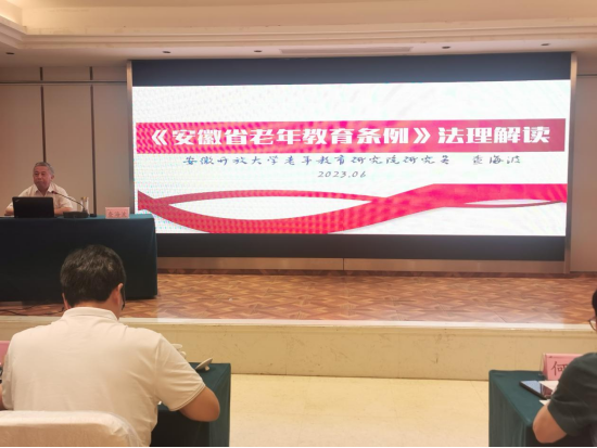 培训班特邀了安徽教育学会督导分会秘书长,原安徽省教育厅政策法规处处长、安徽省人民政府教育督导委员会办公室主任,安徽省教育学会副会长查海波,合肥市庐阳区健乐老年大学校长李静传经送宝。查海波教授以视频、诗歌、故事和事例等方式介绍和解读《安徽省老年教育条例》的时代背景、概念、结构和要点等法理,既生动有趣,很接地气,又高屋建瓴、拨云见日,让学员们对《条例》的内涵有更加深刻的领悟,为开展老年教育指明了法理方向。李静校长的《老年大学的教学与管理》讲座,从老年大学教学活动的指导思想、教学的组织形式、教学管理等方面,为管理人员对如何搞好老年学校教学与管理充了电、蓄了能,具有很好的实操作性,为促进老年学校规范化、标准化发展提供了科学的指导。