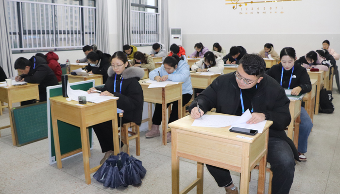 15日上午8时准时开赛,参赛教师根据学段现场抽签。第一项比赛项目是书法(钢笔字+粉笔字),参赛教师在1小时内完成现场钢笔字、粉笔字书写内容,参赛教师全神贯注、认真书写,有的端庄秀丽,有的洒脱恣肆,均发挥出自己最好的水平。