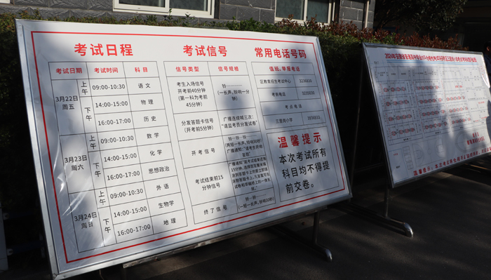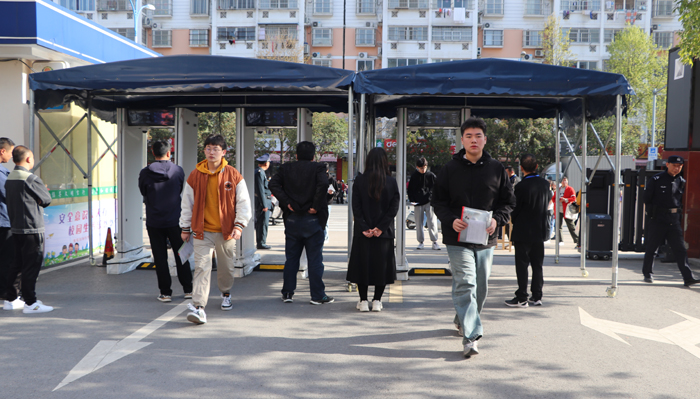 为确保考试期间广大考生创造一个良好的考试环境,裕安区教体局联合公安、卫健、市场监管等部门提前制定好应急预案,全力以赴开展考试期间各项保障工作。在各考点门口设置了考生专用通道,考生们接受证件查验后,依次有序地经过智能安检门进入考点。考生进入考场时,再接受监考人员使用金属探测器安检及对随身携带物品检查,确保本次考试安全、公正。