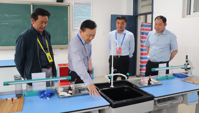 5月9日上午,区委教育工委书记、区教体局局长王永益来到城南中学考点,巡视2024年八年级生物学实验操作考试工作。