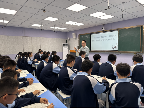 安徽省优秀教师、青山路初中教科室主任唐文周展示了《一棵小桃树》的现场教学。唐老师关注散文文本特性,以本为本,以生为本,设计了“自读旁批知内容”“细读桃树品委屈”“比读身世悟哲思”的三个教学环节,通过预设主问题,抓住审美点,聚焦陌生点,在师生对话中将文本读薄、读厚。