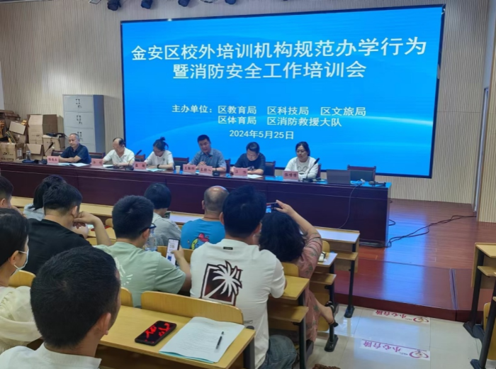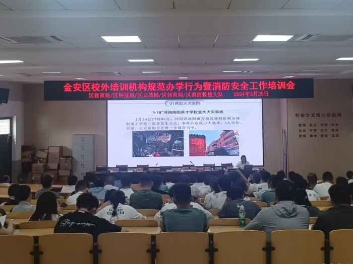5月25日上午,为进一步规范办学行为,切实提高消防安全管理水平,保障人员生命财产安全,金安区教育局牵头,会同区科技局、区文旅局、区体育局,联合区消防救援大队,召开了金安区校外培训机构规范办学行为暨消防安全工作培训会。