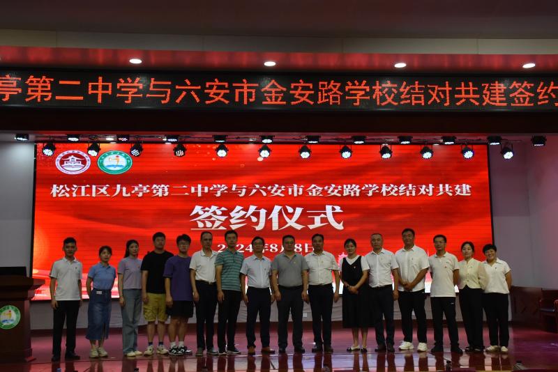依据《上海市松江区教育局与六安市金安区教育局对口合作协议》和2024年松金教育合作交流工作要点,在金安区教育局的指导下,8月8日上午,上海市松江区九亭第二中学与六安市金安路学校暑期共建活动在金安路学校初中部圆满举行。