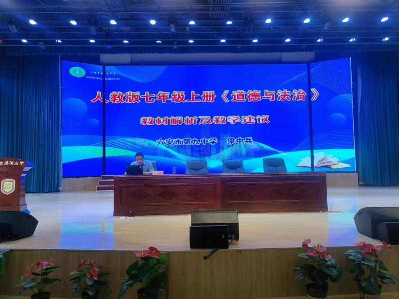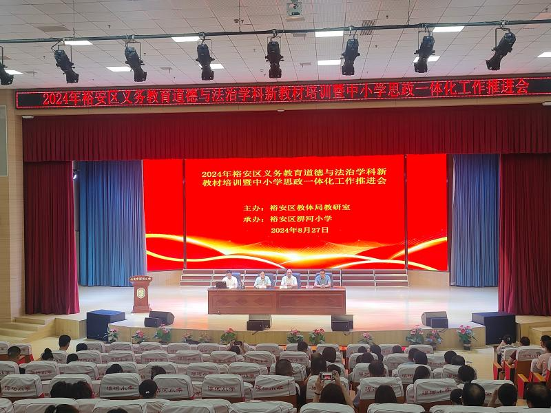 为深入贯彻习近平新时代中国特色社会主义思想和党的二十大精神,落实义务教育课程方案、课程标准,帮助教师准确把握新教材、用好新教材,全面提高教育教学质量,积极探索中小学思政课一体化建设,2024年8月27日下午,裕安区义务教育道德与法治学科新教材培训暨中小学思政一体化工作推进会在淠河小学举行。全区共300余名中小学道德与法治学科教师齐聚一堂,交流共话思政课发展。