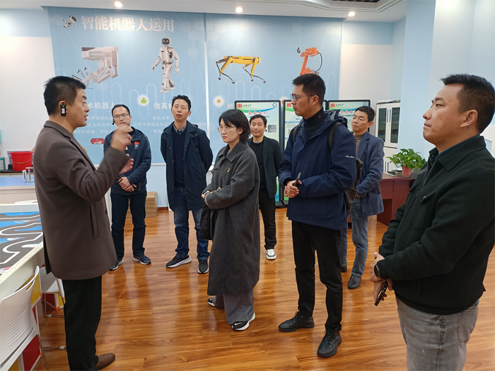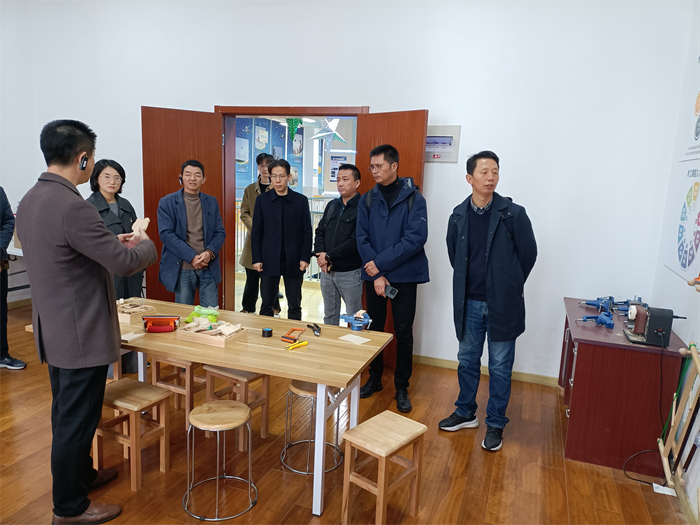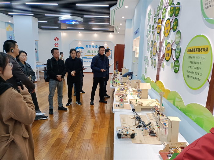 座谈结束后,金安区教育考察团来到合肥市马岗实验小学教育集团南区,开启考察调研之旅。马岗实验小学教育集团少年宫四楼的科学宫集教学、科普、训练、实验、展示五位于一体的科技科普教育基地,在科创中心,展示了大量的科技创新作品, 其中有3D建模创客社团、RIC机器人训练场地。智能鱼灯的STEM课程成果吸引了考察团成员们的目光。这一课程巧妙地将科学、技术、艺术和数学等多学科知识有机融合。