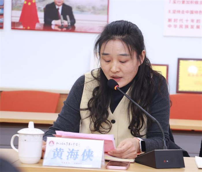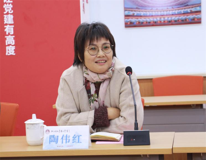 座谈会上,田伟超校长首先对学校的基本情况进行了详细介绍。紧接着,黄海侠副校长、徐旸主任分别就学校的德育工作和教育教学工作给教师们做了毫无保留的分享。随后,六安市金安路初级中学校长潘勇军对金安路初级中学发展情况进行了介绍。在交流中,潘校长对九亭二中的老师们表现出感激之情,对九亭二中的校园环境、校园文化建设给予了高度评价,并表示要继续延续这份深度的友谊,做有温度的教育。最后,九亭二中党支部书记陶伟红介绍了九亭地区的教育发展、九亭二中的教育发展。对六安市金安路初级中学的成绩给予了充分的肯定。