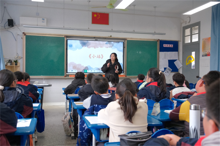 在语文课上,郭欣欣教师执教的《小站》展现出其扎实的教学功底和精心的教学设计。课后,殷秀德老师的评课环节更是本次活动的一大亮点。殷老师从《小站》的评课入手,又增添了《穿井得一人》和《记承天寺夜游》这两篇课文的教学重点分析。“短文、浅易文的教学”一向被老师们忽略,而殷老师以其敏锐的教育视角和丰富的教学经验,提供了切实可行的教学思路和方法借鉴。