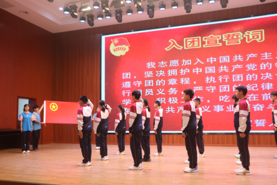 入团仪式上,校团委书记郑重宣布入团名单,与会嘉宾为新团员代表佩戴团徽、颁发团员证。面对团旗,新团员们庄严宣誓。随后,新团员和优秀团员代表依次上台发言。党总支书记曹冲发表讲话,他对新团员们表示热烈的祝贺,并希望新团员们胸怀家国理想,勤学锤炼本领,立德修身笃行,勇担时代使命,以奋斗为笔,在团旗指引下书写无愧青春的答卷!