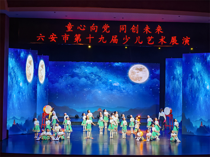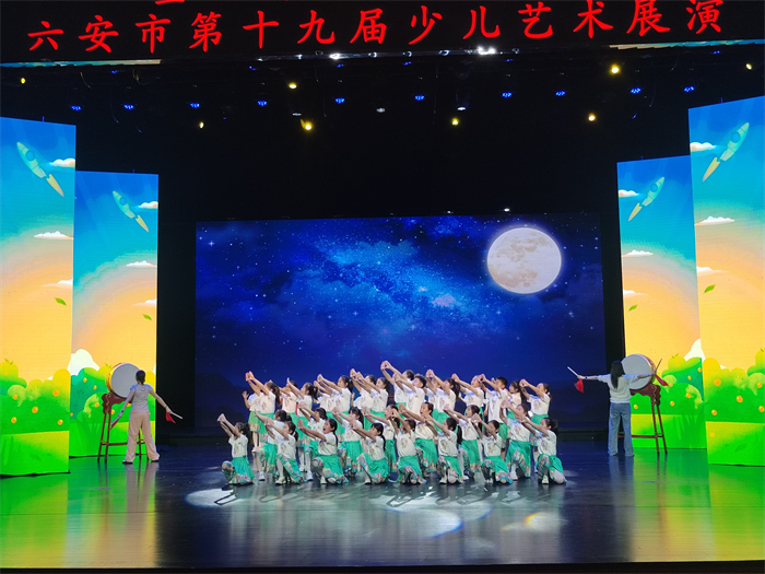 人民路小学南校区一年级学生身着白衬衫黑裤裙,目光清澈而坚定,一曲《如愿》如深情的诉说缓缓铺展。当身着红军装的“革命先辈”与新时代少年穿越时空对话,历史与当下便在舞台中央深情相拥。孩子们歌声中那份庄重与真挚,早已超出童声范畴——如同种子在泥土深处汲取力量,在角色转换与深情歌唱中,他们悄然接过了先辈传递的精神火炬,家国情怀的根脉正在这肃穆的艺术仪式里悄然扎下。梅山路小学的《世界赠予我的》孩子们柔美的声线如初生嫩芽伸展如春风拂过大地,以清澈嗓音唱出面对生活考验的勇气、对梦想的执着追求。当歌声凝成“世界赠予我的,是勇气与梦想”的宣言,这是少年心声的真诚吐露,映照出成长中的坚韧与希冀,抚慰着每一颗在风雨中努力挺立的祖国花朵。“敕勒川,阴山下,天似穹庐,笼盖四野……”悠扬的歌声,耳熟能详的诗句,舒展洒脱的舞蹈,绚丽多彩的灯光,汇文学校的同学们仿佛带领观众穿越时空,悠然梦回昔时广袤草原。六安市人民路小学的合唱《渔歌子》将唐代张志和的经典词作《渔歌子》与现代音乐编曲巧妙融合,通过童声合唱、古风舞蹈等多元艺术形式,让千年诗词焕发新生。在舞台设计上,水墨山水背景、传统服饰,营造出“斜风细雨不须归”的诗意意境,展现传统文化之美。以其独特的艺术呈现和文化内涵,成为校园美育实践的亮点。人民路小学安丰路校区的《望月》奏响时代旋律,唱响心中赞歌,传递着厚重质朴的家国情怀,展现出新时代少年儿童开拓创新、锐意进取的精神风貌。