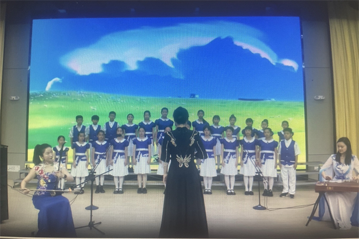 一首首歌曲从少年儿童心中飞出,传唱着历久弥新的经典,一首首歌曲带着中华儿女的血脉激情,久久回荡在孩子们的心中。孩子们沉浸在音乐中,享受合唱带来的欢乐。