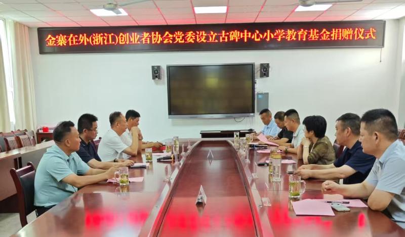 6月15日上午,金寨在外(浙江)创业者协会党委书记周思鑫一行,到金寨县古碑中心小学开展捐赠活动,设立教育基金。县教育局、县财政局、古碑镇政府相关负责人参加捐赠活动。